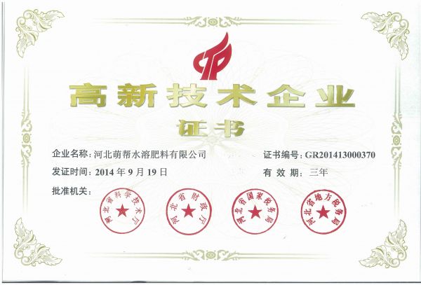河北萌帮水溶肥料有限公司源于1995年所从事的农业植保技术服务,2009年成立,公司坐落于河北省赵县新寨店工业园区,占地41000平方米,集研发、生产、销售、服务于一体是全球专业的水溶肥料制造商和服务商。目前已经发展为一家拥有300多名员工、建有年产10万吨水溶性肥料生产线,并和其他厂家合资、合建、合作生产磷酸二氢钾3万吨、硝酸铵钙6万吨、工业磷酸一铵6万吨。   萌帮先后通过了ISO9001:2008国际质量管理体系认证;OHSAS18001:2007职业健康安全管理体系认证;ISO14001:2004环境管理体系认证;“萌帮”荣获了“河北省著名商标”称号。2013年,萌帮与国家科技部就“中量元素水溶肥料中试及产业化”项目进行了研发立项;萌帮的“卡丁”牌大量元素水溶肥料荣获河北省中小企业局“名牌产品”。2014年获得“高新技术企业”称号。 ...... [ 查看详情 ]