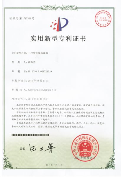 河北冠宇环保设备股份有限公司,创建于2006年7月10日,是具有生产制造、技术研发、工程设计施工、进出口贸易于一身的国家高新企业、挂牌上市公司,股权代码:660171。 公司是从事臭氧消毒设备、紫外线消毒设备、制药设备、过滤设备、水处理消毒净化设备、空气 (废气)消毒净化设备的专业生产厂家和工程商。公司拥有10项实用新型专利,1项发明专利,产品2012年通过了IS9001质量管理体系认证。 企业产品广泛应用于中水、污水、净水、废水、废气、制药、食品、饮料、泳池、养殖、果蔬保鲜、景观用水、化工等行业;设备畅销国内,并远销非洲、菲律宾、俄罗斯、马来西亚、澳大利亚等国家。 公司秉承厚德载物、诚信冠宇的做人理念;冠宇环保、冠军品质的产品追求;军队+学校+家庭的管理理念;管理系统化、营销创新化、市场全球化、品牌国际化、产品系列...... [ 查看详情 ]