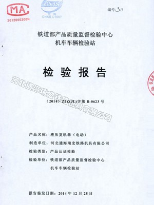 河北通海瑞宏铁路机具有限公司座落于石家庄天山国际制造产业园凤凰北街8号。   公司倡导员工坚持“卓越品质、真诚服务、齐心协力、勇于创新”的理念服务于广大客户。公司全面深化产品质量,建立完善的质量管理体系,通过了ISO9001质量认证,中铁检验认证中心CRCC认证证书,产品多次通过铁科院质量检验中心检验(如起复机具、抬轮器、救援工具等)。   为适应铁路快速发展,满足救援设备轻便快捷的要求,我公司是国内最早一家把三级钛合金液压起复机具运用到实际救援中的厂家,得到了铁道部和各铁路局领导的一致赞美和好评,铁路救援起复设备迎来一次革命性变革。起复机具通过了太原局科技成果鉴定,并获得了国家级新型实用专利。   为解决连体货车或大型养路机械等中间车轮脱线后救援难题,我公司投入大量人力、物力研制出无动力...... [ 查看详情 ]